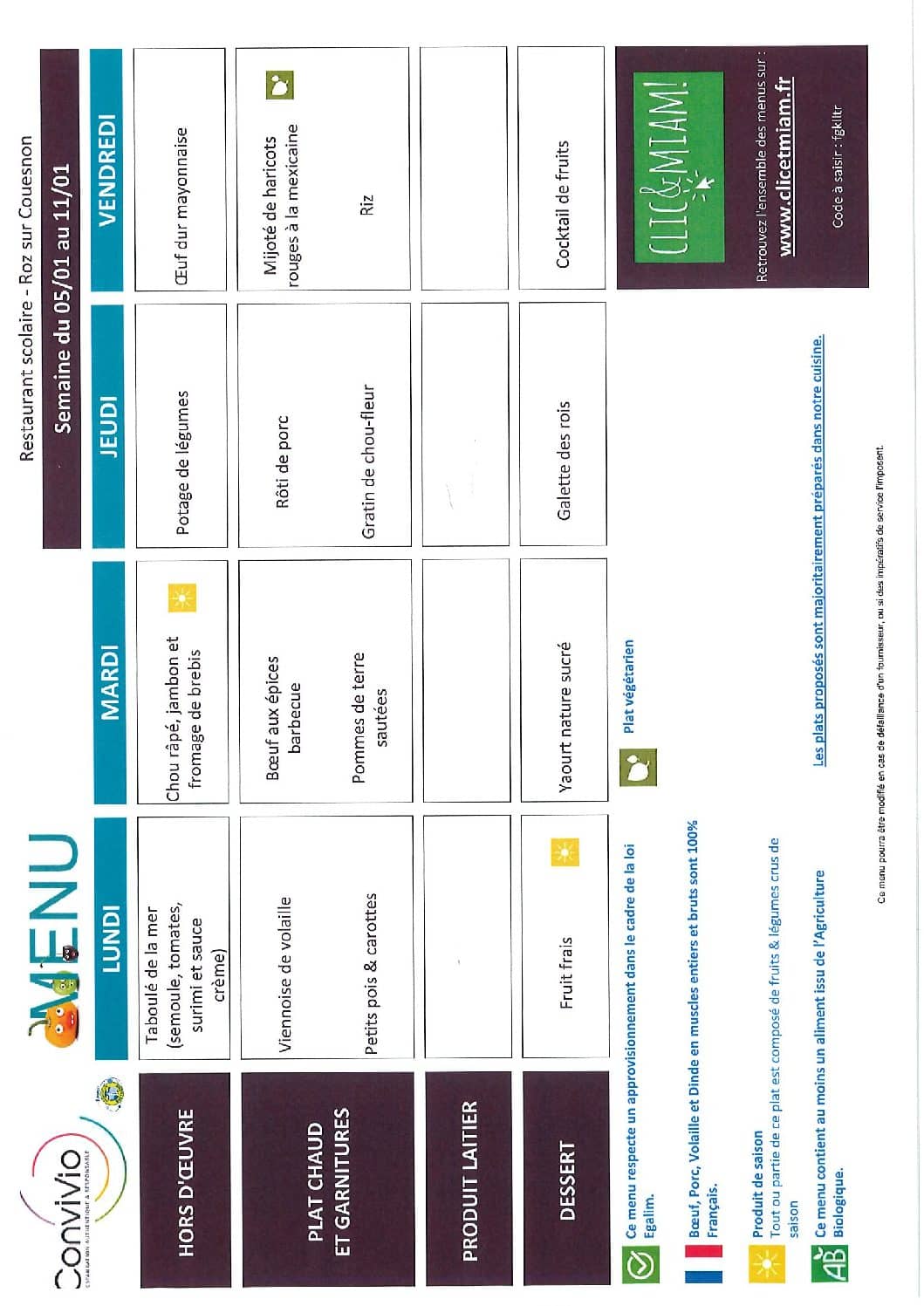 Menus de la cantine