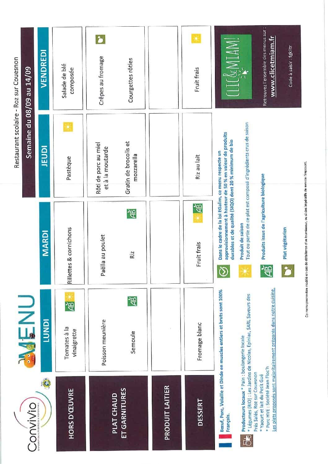 Dès la rentrée, vous trouverez ici les menus de la cantine